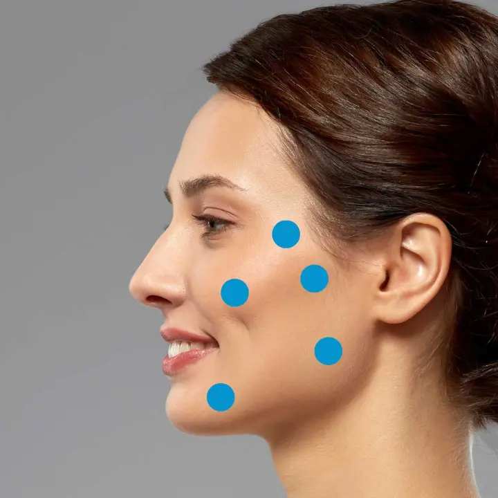Behandling med Jalupro Super Hydro foregår ved hjælp af 6 BAP (Bioactive Points) teknik. Det vil sige produktet fordeles med 5 indstik steder på hvor side af ansigtet.